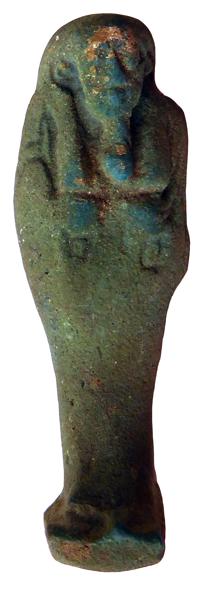 Shabti of Mes?kanebIset?. Blue glazed (surface decayed) with black details.