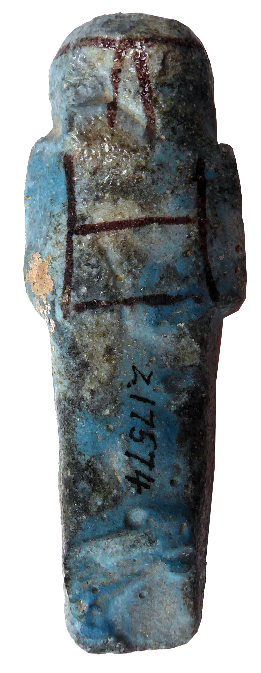 Glenn Janes (2018): 'Blue glazed faience shabti, details added in black, for Hortawy (or Atawy?).'