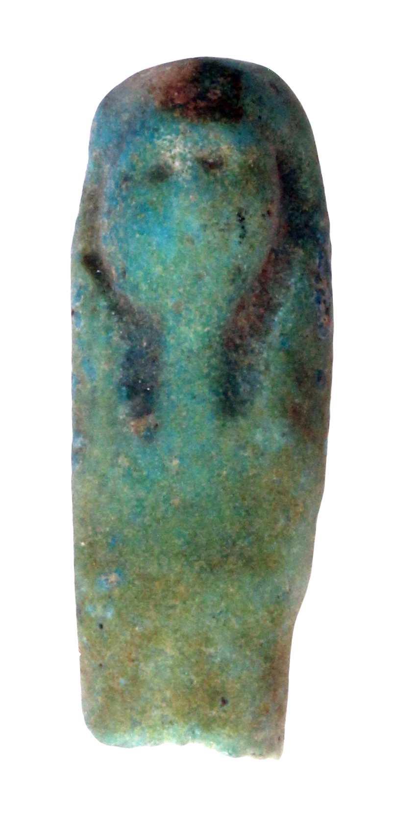 Glenn Janes (2018): 'Blue glazed ushabti. Lower part is missing.'