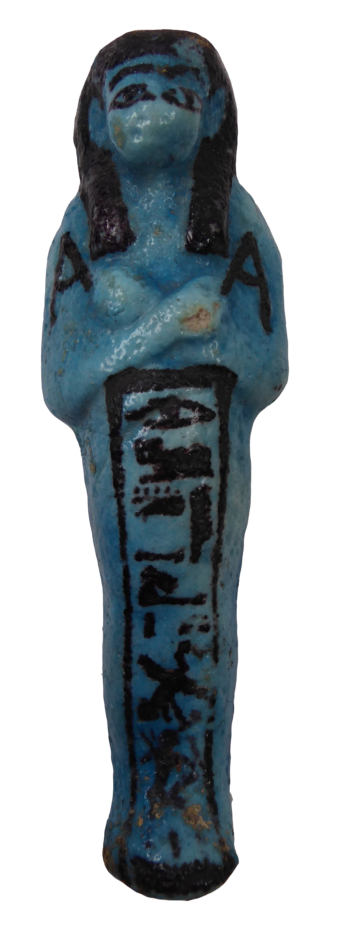 Glenn Janes (2018): 'Blue glazed faience shabti, details added in black, for Amenemhatpamesha'.