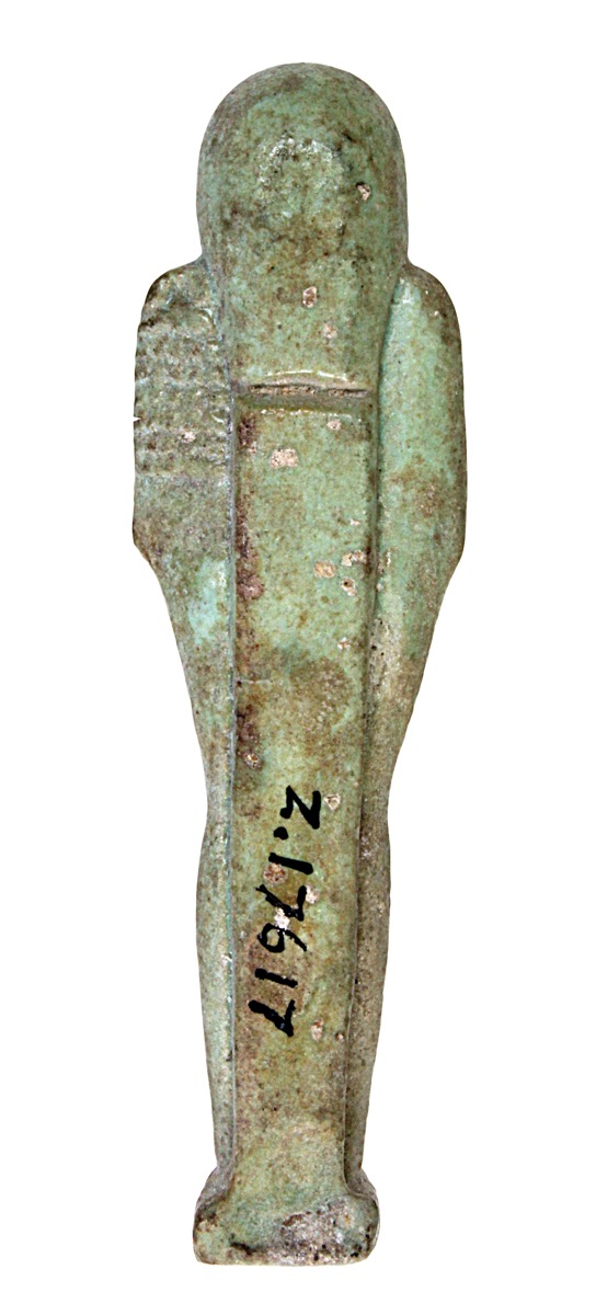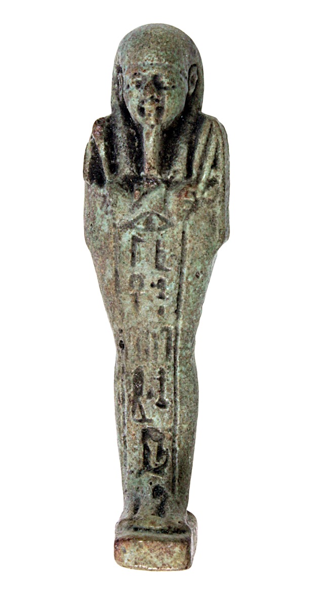Glenn Janes (2018): 'Green glazed ushabti with a vertical column of incised inscription naming the owner as ?Hor-ankh, born to Nefer-iy-ty.'