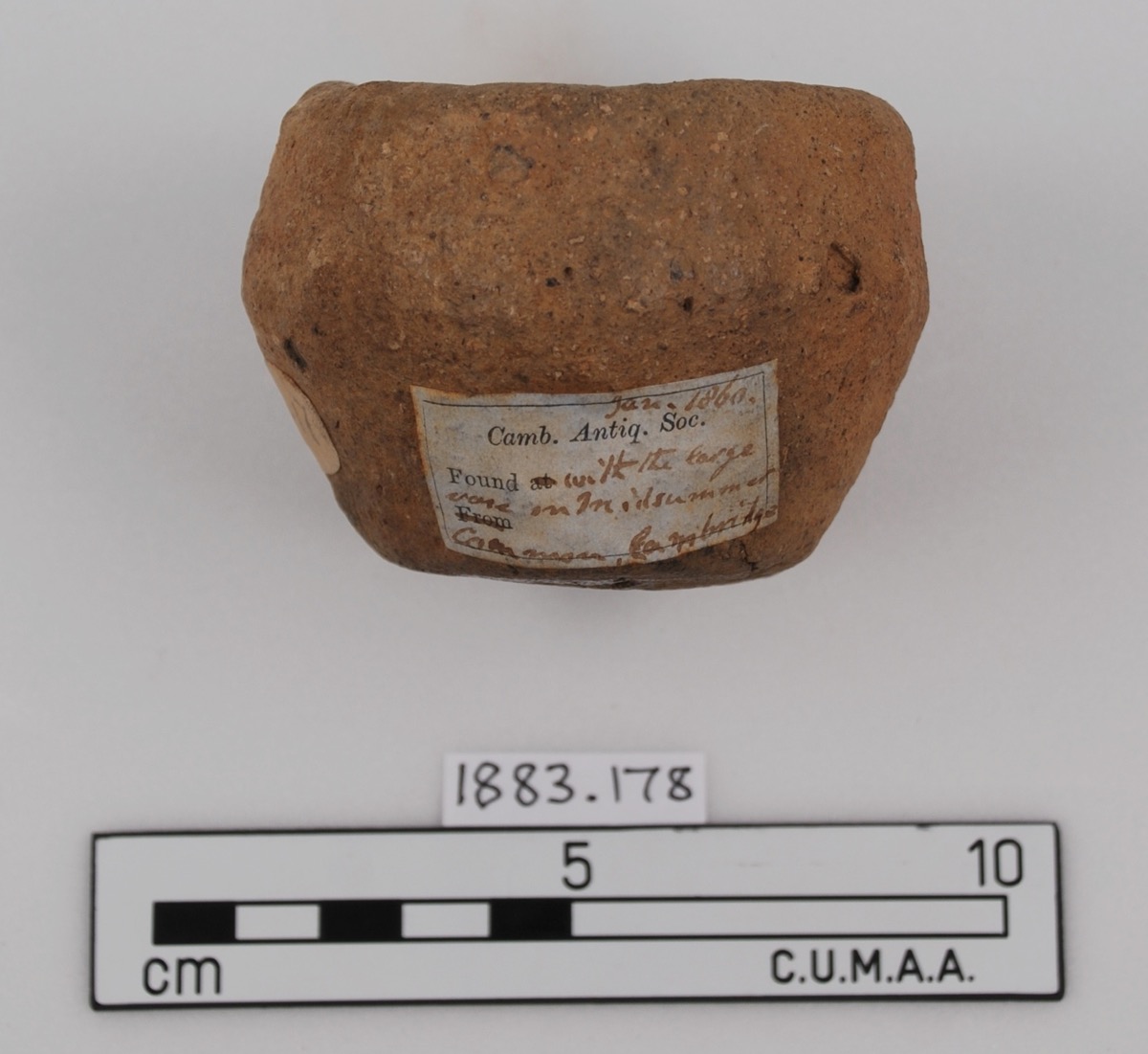 Found: Midsummer Common. Old label inside reads: "Found with the larger vase on Midsummer Common by diggers of gravel in Nov 1859." (ie 1883.177)