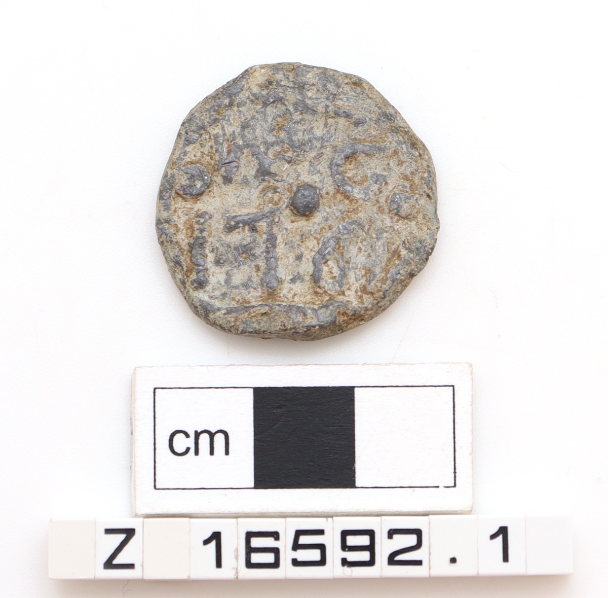Handwritten label in pencil found with object reads: 'Seal of wine bottle 18th cent Seal of wool sack? 18 cent.'