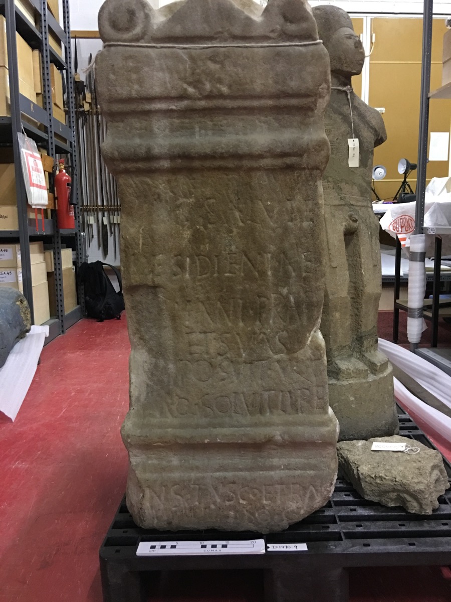 'Altar, found in, or before, 1601 at Housesteads. Bainbrigg assigned it to Chester in the Wall (or Busy Gap); Horsley, with hesitation, to Chesterholm, while Hodgson, Bruce and Huebner assigned it to Carvoran. For the attribution to Housesteads see Haverfield, Birley (1951). Sides now inaccessible'. (Collingwood and Wright 1965)