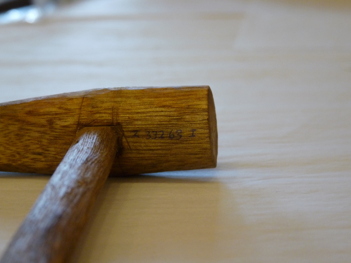 Large hammer belonging to a model set of goldsmith's tools.