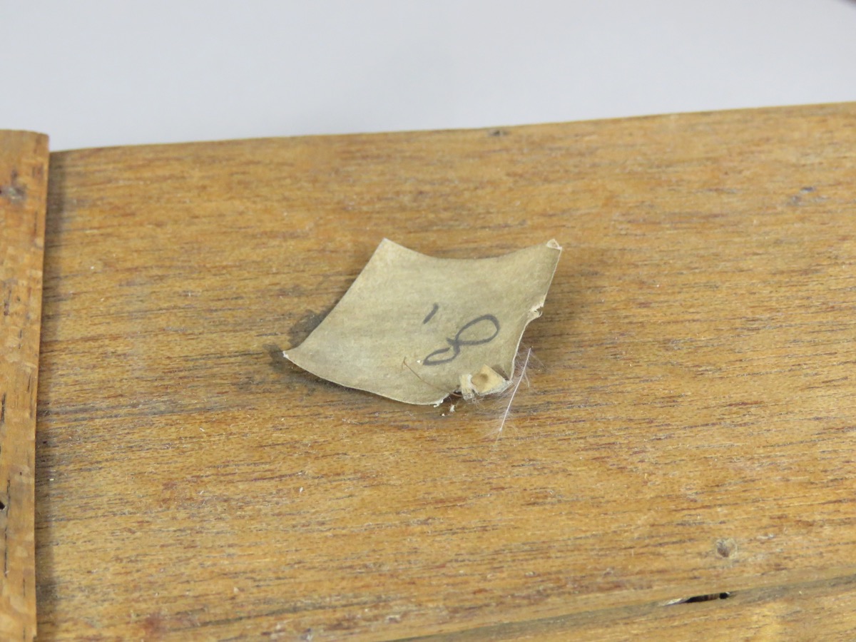Old paper or parchment label with '81' written in faded ink, on top of the deckhouse. Unknown origin, possibly from the collector's notes