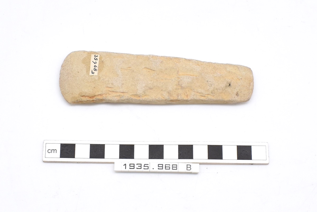 The collection of stone implements is split in three sections, Axe form (1935.968), Adze form (1935.969-70) and Gouge form (1935.971).