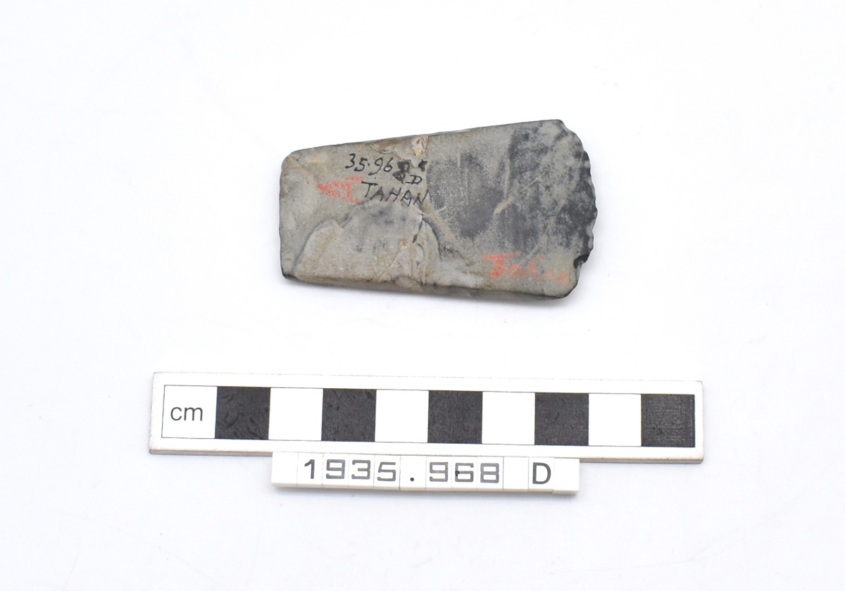 The collection of stone implements is split in three sections, Axe form (1935.968), Adze form (1935.969-70) and Gouge form (1935.971).