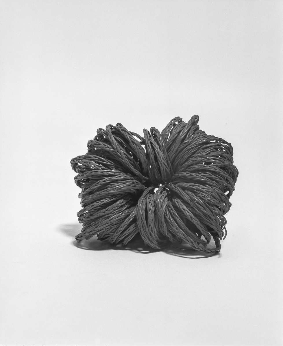 Card 2: 'Bundle of small rings plaited from fine surface roots of coconut palm.'