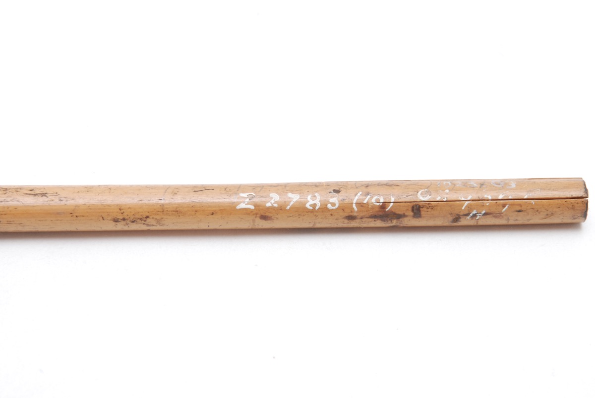 Labels & inscriptions: '1923.G3' inscribed in white ink on the haft. 'O.X.939E.H' inscribed in white ink on the haft. 'Z. 2783 (10) inscribed in white ink on the haft. 'Register [word illegible] Gordon collection 1921'.