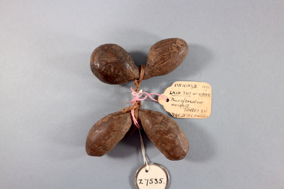 Card 1: 'LAIP TUT or UBAR. Ear weight. A pair of small ear weights'