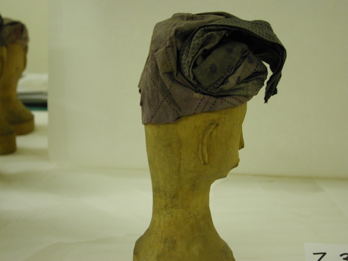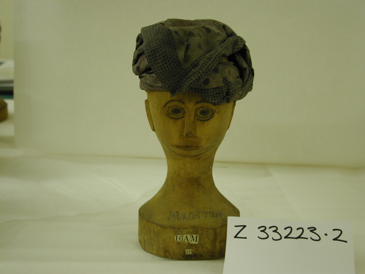 Wooden Head - One of a set of eight wooden heads showing different ways of wearing turbans. " kukoh tua "