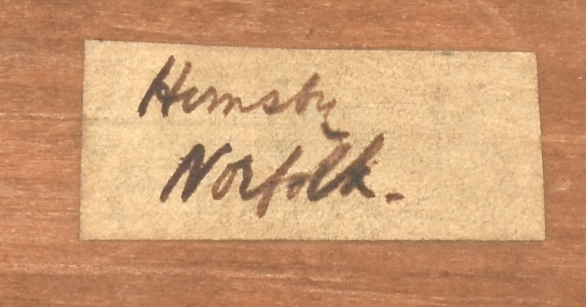 Original handwritten label attached to back of object reads: 'Hemsby, Norfolk.'