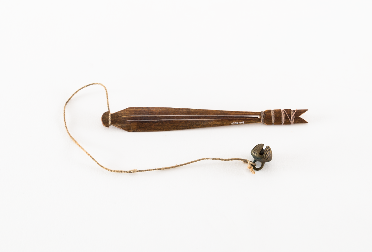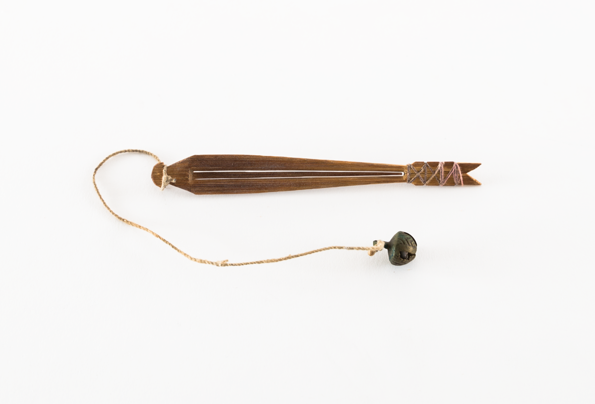 Musical instrument (lamellophone), a bamboo jew's harp with string with bell attached.