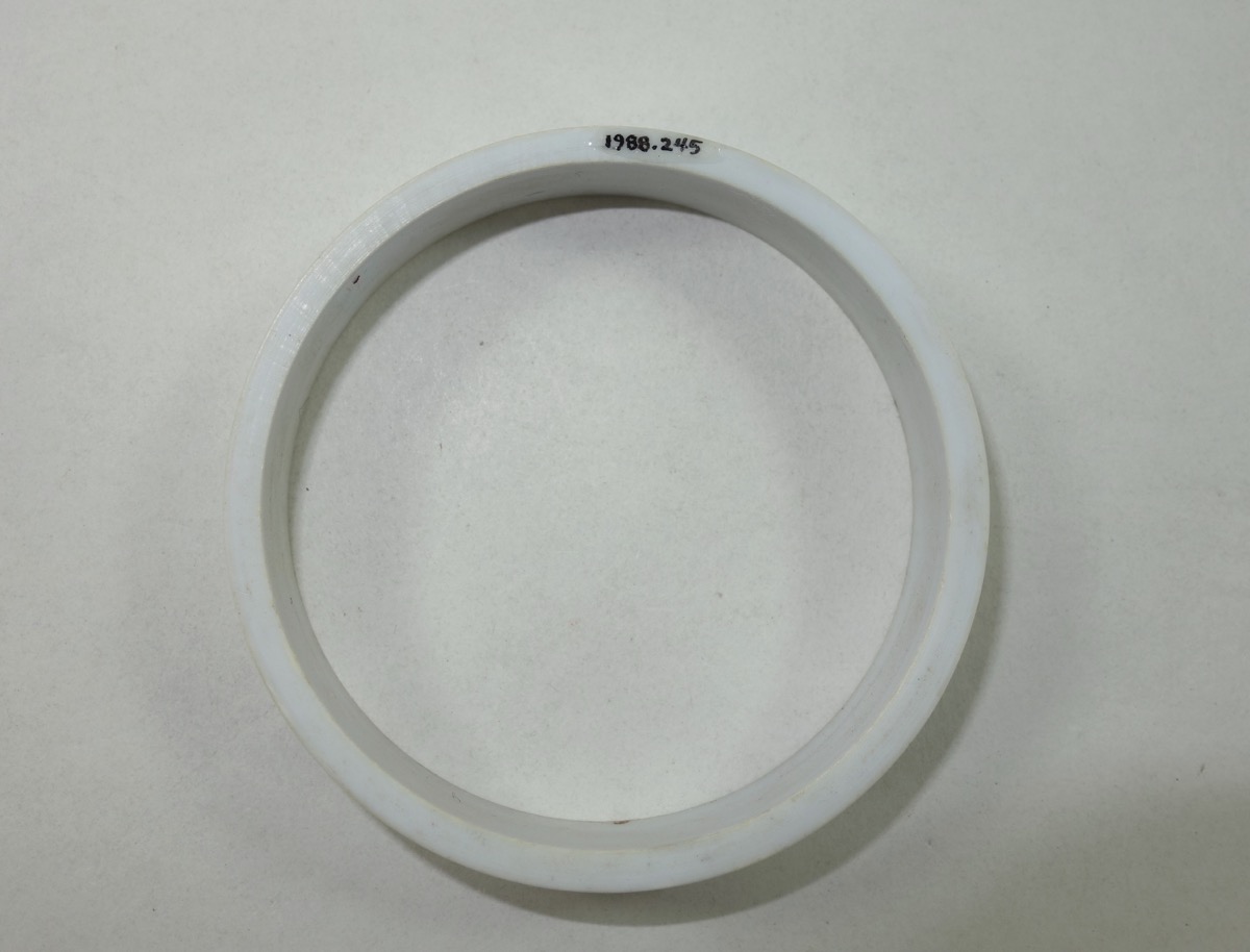 Worn by married Girahya women as a sign of marriage, were traditionally made of ivory but in modern times only available in plastic; Collected by: Unnithan.Maya in 1987