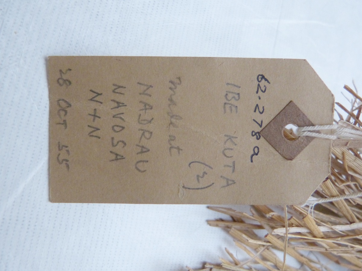 '62.278 A. IBE KUTA (2). Made at Nadrau, Navosa N + N. 28 Oct. 55.' on one side. On the other side [handwritten in black ink:] '62.278' a inscribed on the mat in black ink.