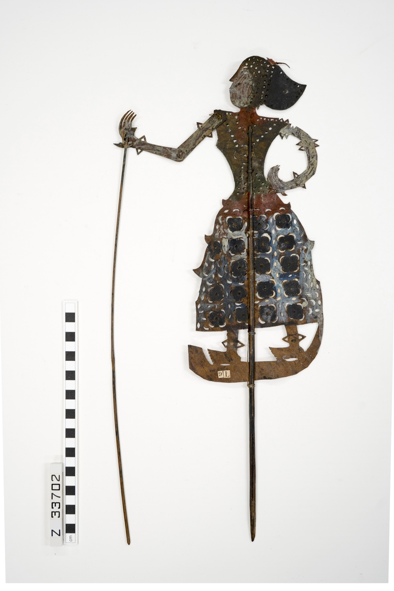Translation of the label on the wayang Siam puppet by Matthew Cohen provided on 29/08/2015 reads: Mek Senar (P. Siti Dewi): Mek Senar (Princess Siti Dewi]