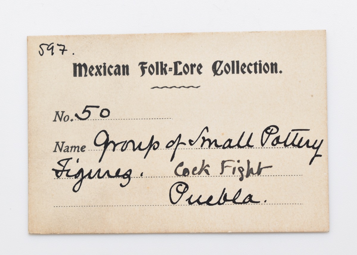 The Frederick Starr Collection of Mexican Folklore was never catalogued when it came to the museum. Cataloguing was done in 1984 when, by error, some of the items were entered in the 1984 book instead of the Z book. To try to correct this in the simplest way possible, all these numbers were grouped under a single Z number, in addition to the number already given. The remainder of the collection was then given individual Z numbers in the normal way. The collection was examined in 1984 by Dr Charlene Cerny (Director of the Museum of National Folk Art in Santa Fe, New Mexico) and her colleague, Valentin Jacques, both experts on Mexican folk art. Her notes on the collection, together with a xerox of the original catalogue, which has full details on the uses of the various items, is on file. The collection is unusual in being well documented and of such an early date, and is a rare one outside Mexico. Not all the items listed in the original catalogue were found at the time of cataloguing.