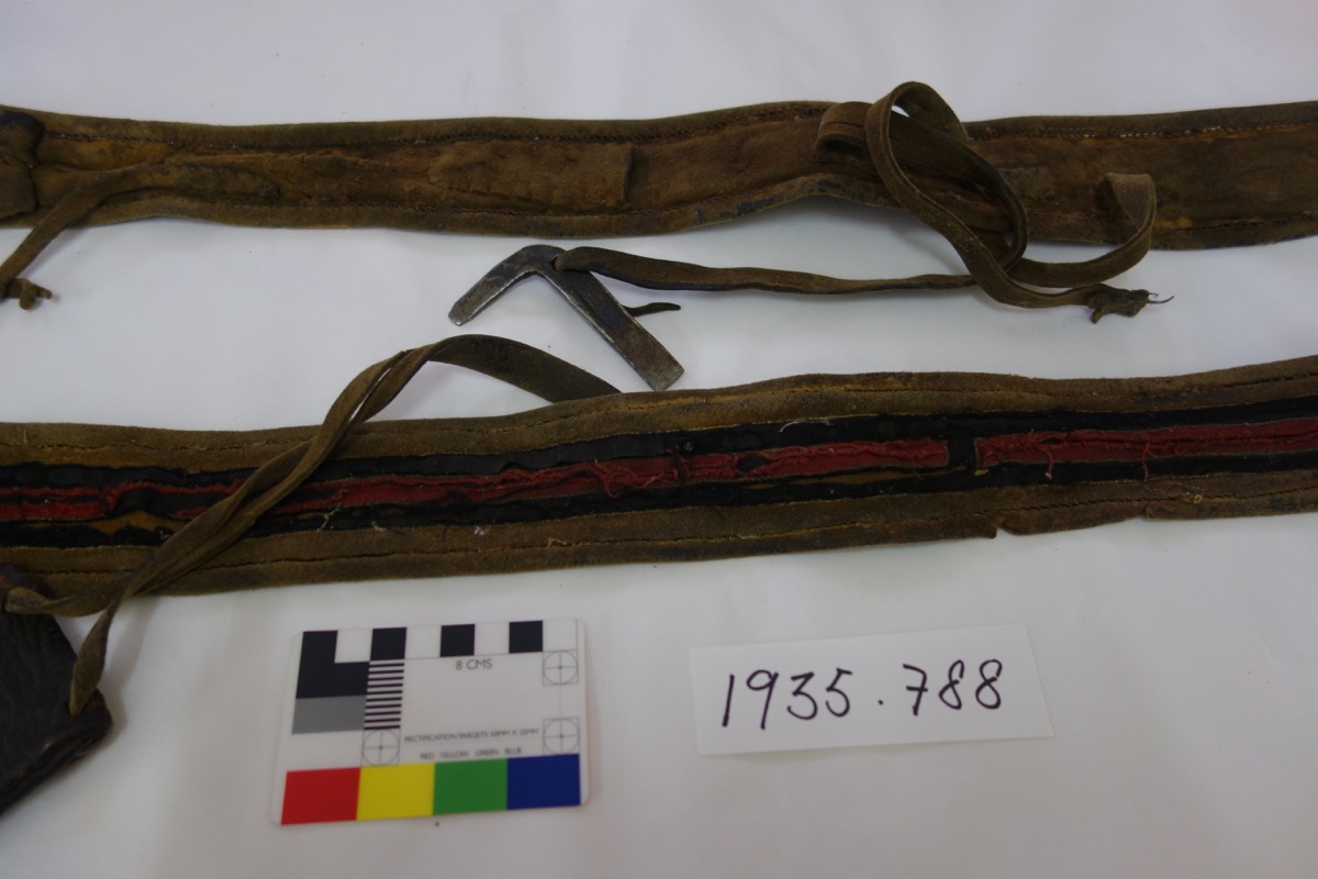 Accession register for 1935.788: 'Bandolier with cases for powder & bullets.'
