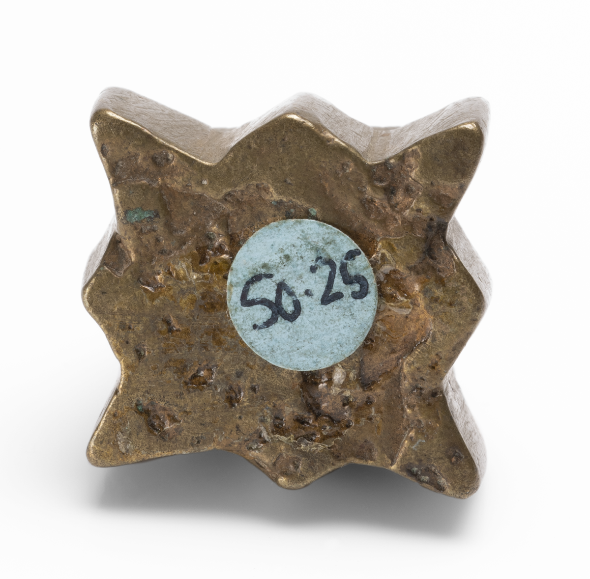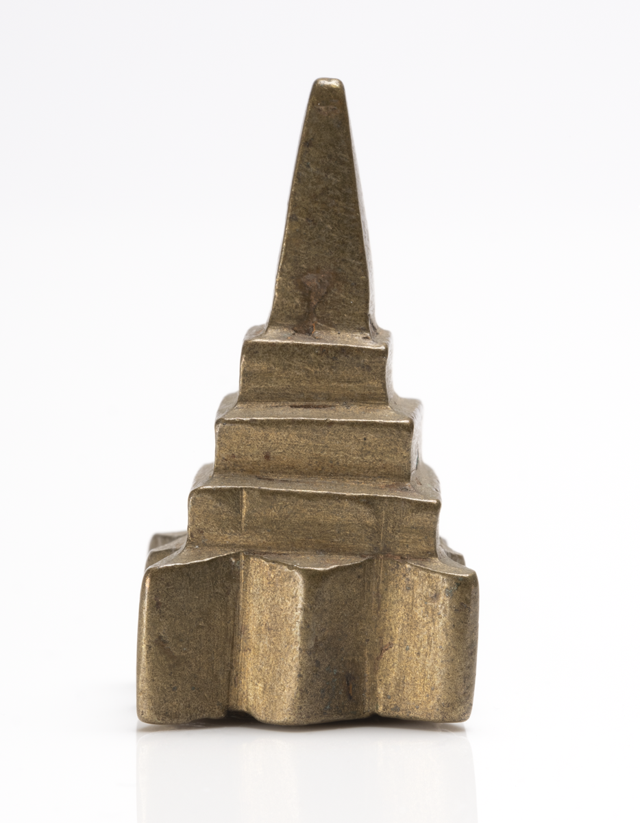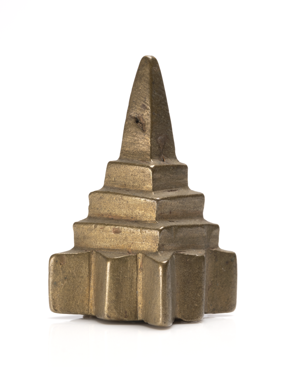 Abrammo. Brass goldweight in the shape of a 4-sided stepped pyramid.