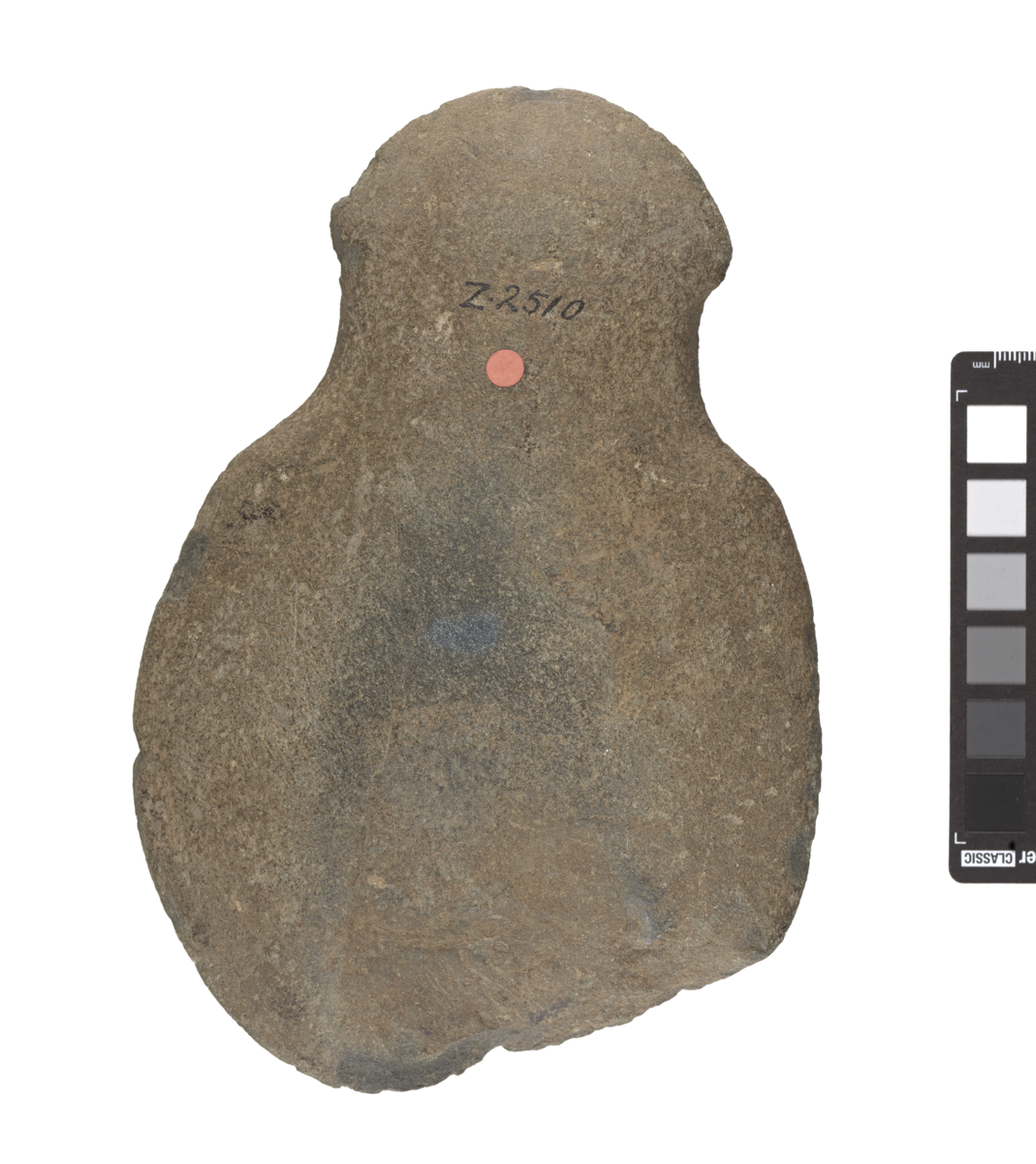 Accession register entry for Z 2510 notes 'Stone axe waisted at butt/ Antigua/Briggs Coll./Figures in TIMEHRI [The Journal of the Royal Agricultural and Commercial Society of British Guiana], Vol. III, 1884, Pl. 8, Fig. 4.