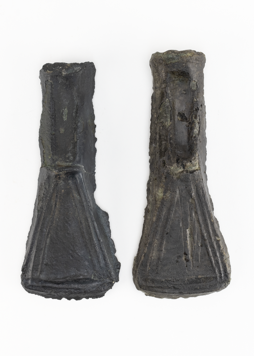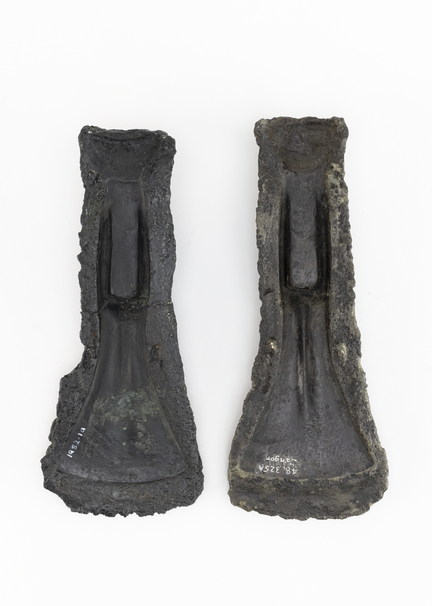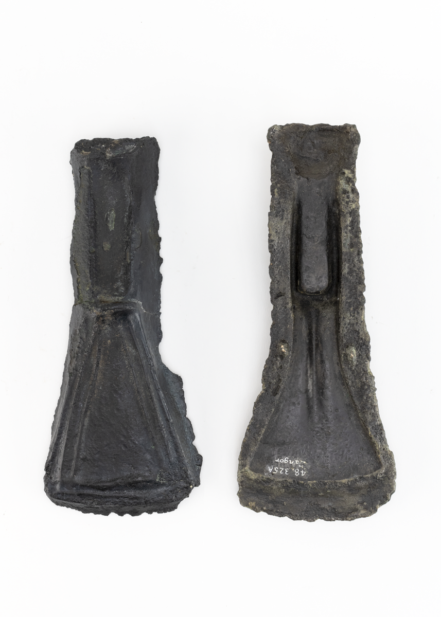 Cast of 1948.325, a palstave mould. 'A' is the cast of 1948.325 B; 'B' is the cast of 1948.325 A.