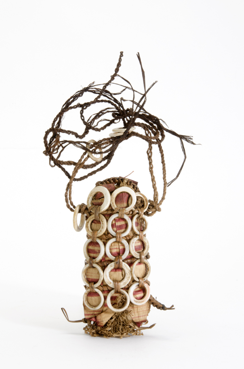 Najiri Balisura. Charm made of dried pandanus or other leaf ornamentation of bone rings, used as a guide, protector, and luck bringer during head hunting expeditions
