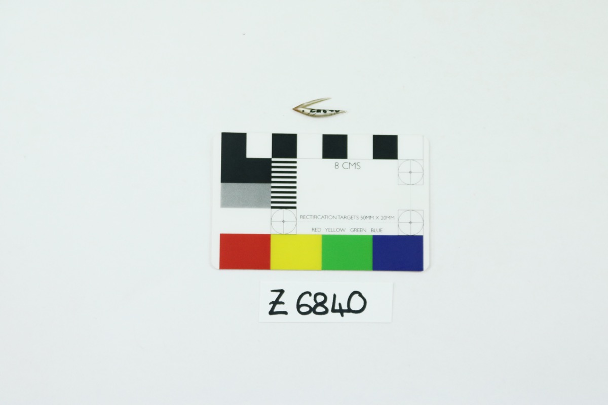 On catalogue card for Z 6840: 'Tiny shell fish hook'.