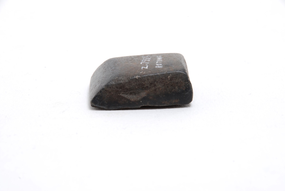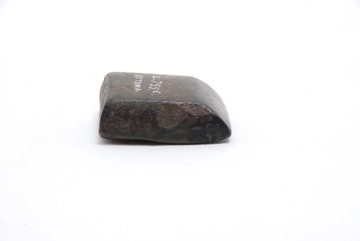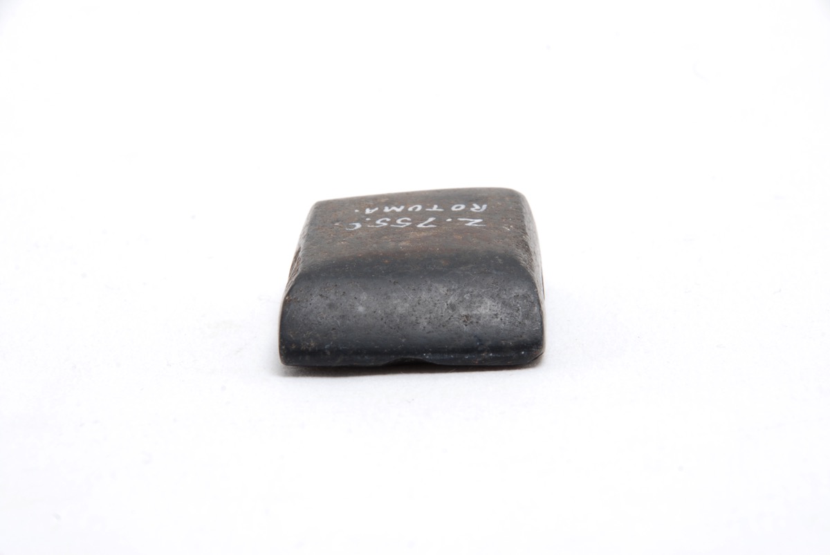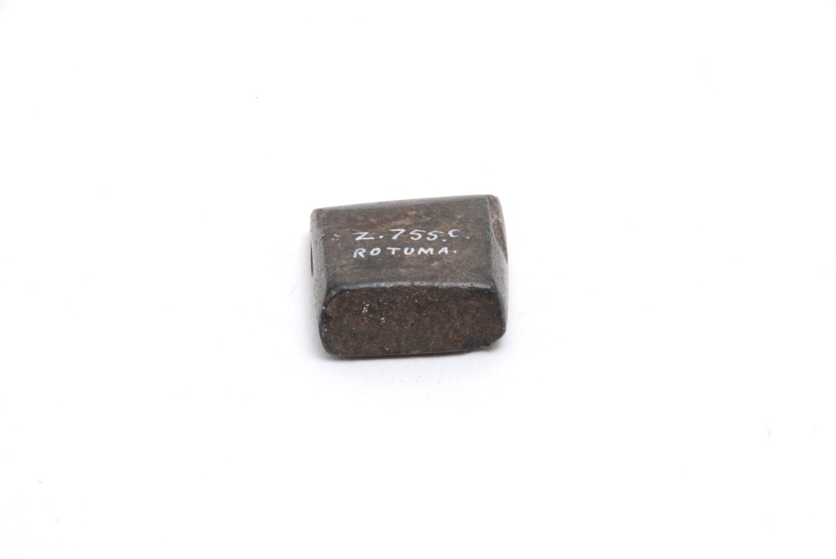 Gardiner (1898), p.459: 'Stone axes (Plate XXVIII, Figs. 1-3) were made of a very fine grained basaltic rock common in the island, or of dense lava rubbed down to the proper size and form; they were termed ia hofu. They were mounted on an elbow stick, as is general in the South Pacific. In shape they are roughly rectangular, flattened above, below, and at the sides, with one end bevelled away. Proportionately to their size, they are remarkably thick, and the angle of their cutting edge is very blunt.'
