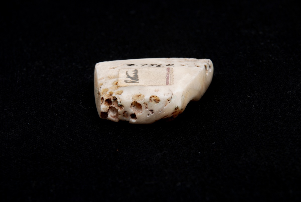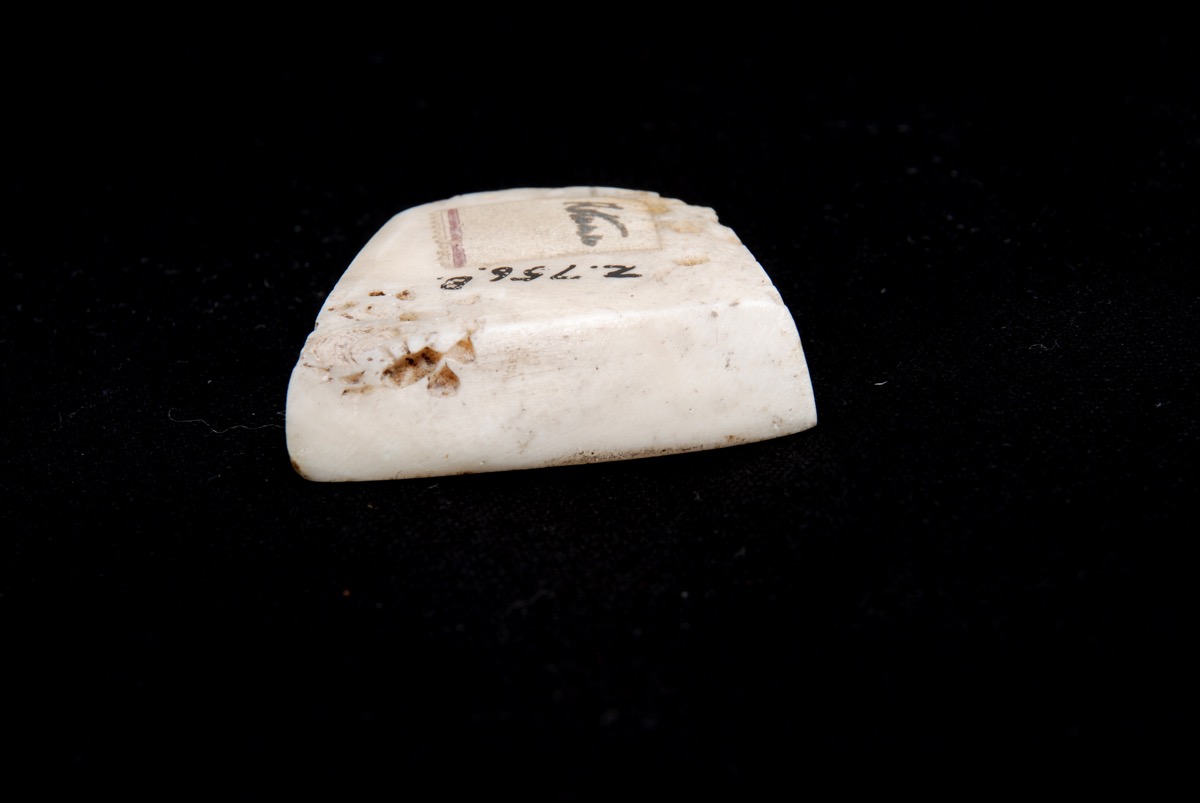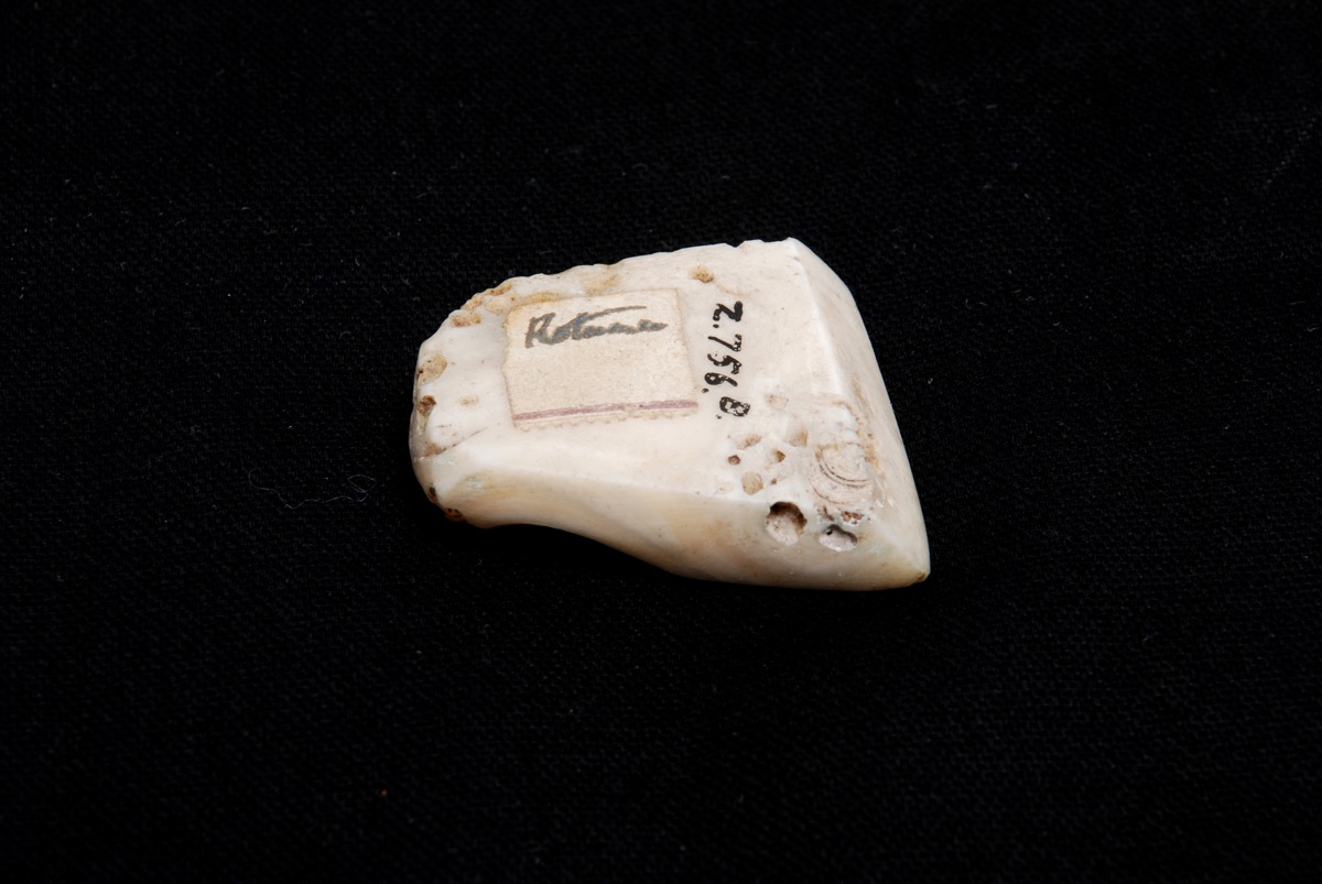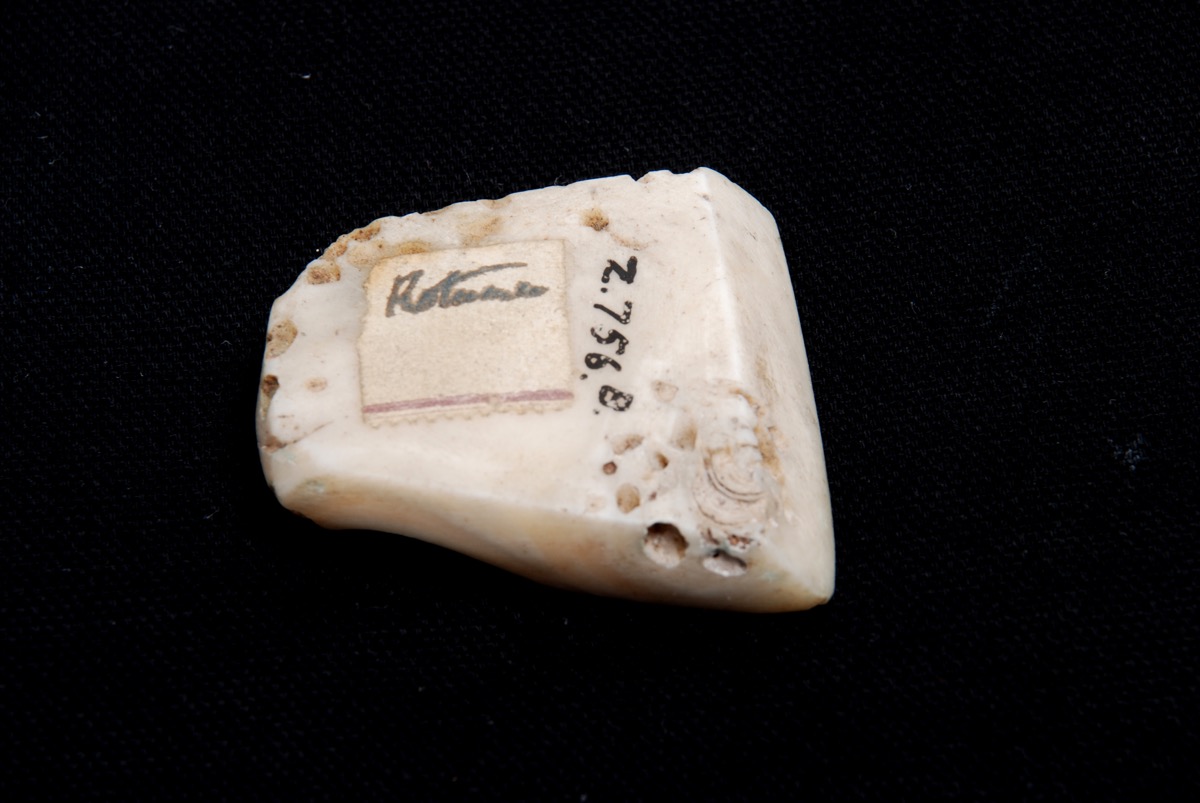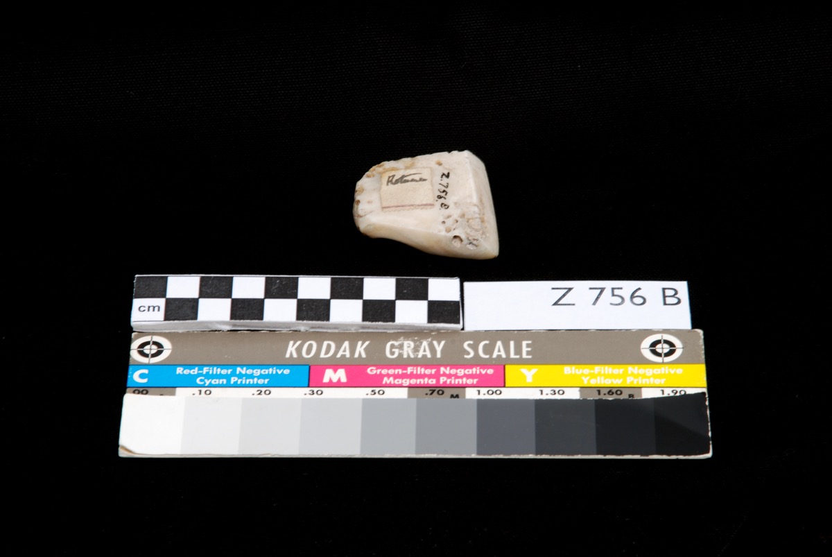 Catalogue card reads [handwritten in black ink:] 'Z 756.a-d. Rotuma. Four Tridacna shell adze-blades. Cf. J.A.I. vol 27, p.460. c&d Prof. Stanley Gardiner'. A small round red sticker pasted to the front of the card.