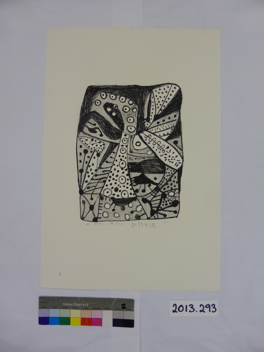 Presented by The Art Fund and the Esmée Fairbairn Foundation. An acquisition project to build a collection of modern and contemporary work on paper from Australia, Canada and South Africa was undertaken over 2011-13 with the support of a grant under The Art Fund's RENEW programme. The collection was developed with the expert advice and generous assistance of Annie Coombes and Norman Vorano in relation to South African and Inuit artists respectively. Khadija Carroll, Anita Herle and Diana Wood Conroy also contributed to the selection process. Obtained from the Kuru Development Trust, Ghanzi, Botswana, November 2013.
