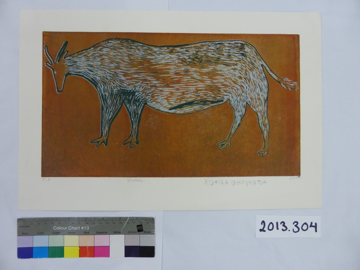 Print; Reduction lithograph - Reduction lithograph by Xgaiga Qhomatca titled 'Eland', edition TP [trail print].