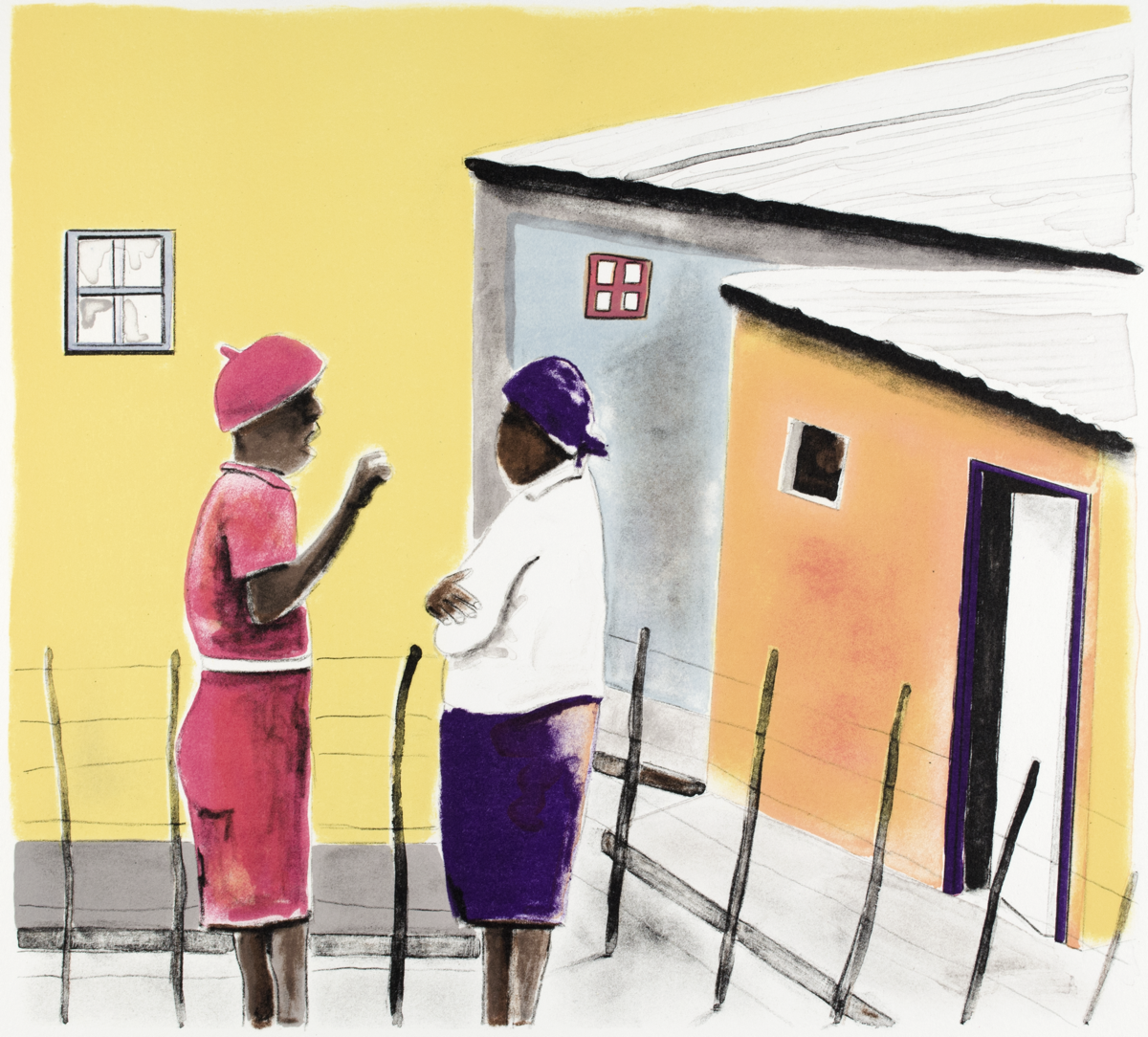 MAA’s selection represents his practice over a period of almost twenty years, and a unique vision that is at once political and historical, and rich in personal insight. The 2012 works were described as 'conversation pieces'; they engagingly evoke aspects of township sociality through typical characters and fragments of conversation; the viewer cannot resist speculating about what came before and what follows. These simple, beautifully composed works reinvigorate the genre of township imagery, reclaiming vitally important subjects and dimensions of black experience that have otherwise been cheapened by the emergence of, for example, generic paintings for tourists of township scenes.