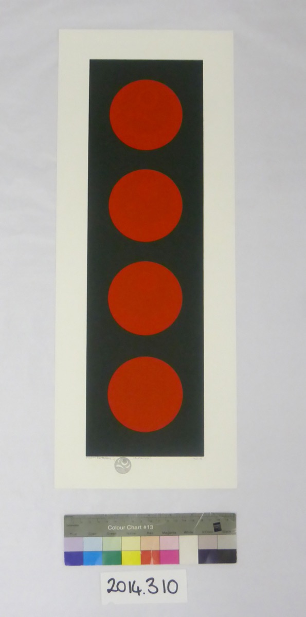 Presented by The Art Fund and the Esmée Fairbairn Foundation. An acquisition project to build a collection of modern and contemporary work on paper from Australia, Canada and South Africa was undertaken over 2011-13 with the support of a grant under The Art Fund's RENEW programme. The collection was developed with the expert advice and generous assistance of Annie Coombes and Norman Vorano in relation to South African and Inuit artists respectively. Khadija Carroll, Anita Herle and Diana Wood Conroy also contributed to the selection process. Leslie Robert Sam (1973-) known by his artist's name LessLIE, has developed a distinctive Coast Salish graphic style that explores and extends the traditional Northwest Coast form-line design principles found on objects such as spindle-whorls and boxes. Trained in graphic arts as well as history and art history, his work references both western and indigenous artistic developments on the Northwest Coast of Canada. His print 'Salmon Eggs' symbolizes the graphic development and perpetuation of Coast Salish art. At first glance, it does not appear to be a Northwest Coast design, yet the subtle appearance of a salmon head within the eggs references its Coast Salish origin. 'Salmon Eggs' also alludes to an archaic, traditional medium utilized by First Nations of the northern Northwest Coast. In pre-contact times, a traditional paint medium for northern Northwest Coast artists was chewed salmon eggs mixed with human saliva and natural pigments (a mediational medium which has a cultural commonality with the egg tempera used by Western artists). LessLIE's artwork is rapidly gaining national and international recognition. He has participated in numerous exhibitions over the last decade and is currently preparing new material for an exhibition of contemporary Coast Salish Art at the Victoria Art Gallery.