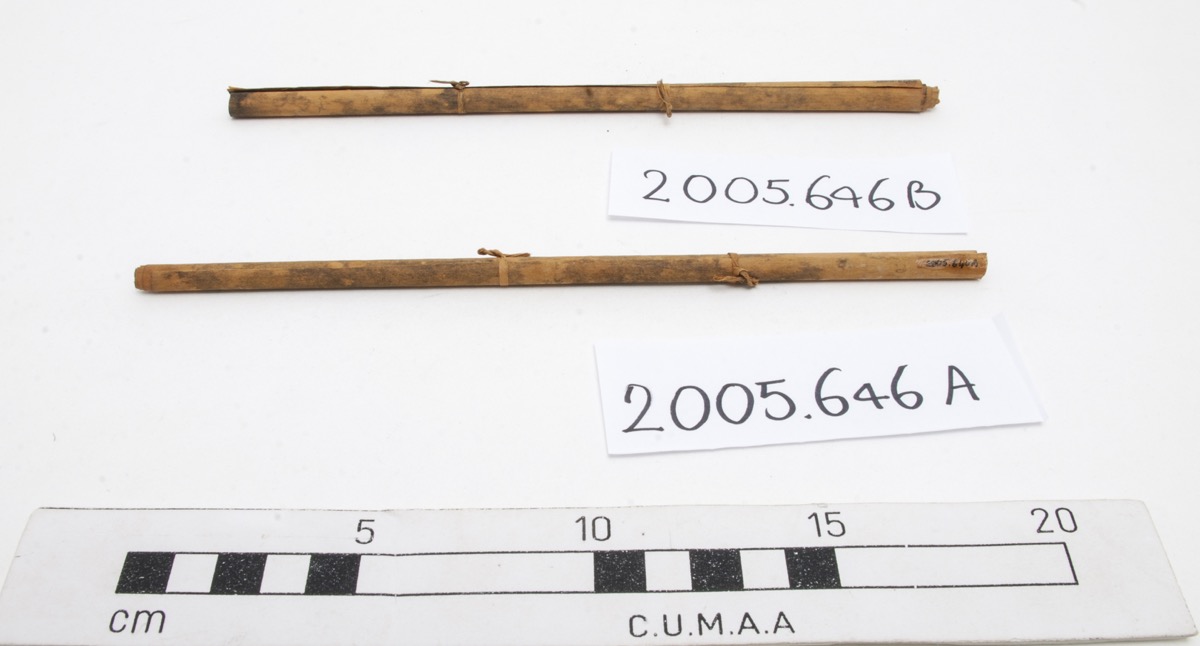Part of a group of objects, (2005.629-49), bought, bartered or received as a gift through the intermediary of the collectors' extended family. Exchanged by Mimi-Siku's father-in-law for Cuban cigars.