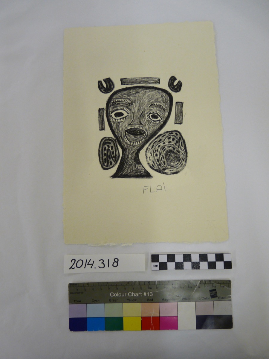 Presented by The Art Fund and the Esmée Fairbairn Foundation. An acquisition project to build a collection of modern and contemporary work on paper from Australia, Canada and South Africa was undertaken over 2011-13 with the support of a grant under The Art Fund's RENEW programme. The collection was developed with the expert advice and generous assistance of Annie Coombes and Norman Vorano in relation to South African and Inuit artists respectively. Khadija Carroll, Anita Herle and Diana Wood Conroy also contributed to the selection process. !Xun and Khwe Art Project Lithographs.