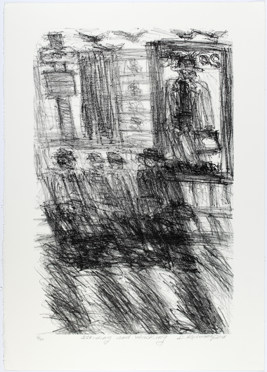 Lithograph by David Koloane titled 'Striding and Walking', dated 2011. Edition 6/20. Condition: Good