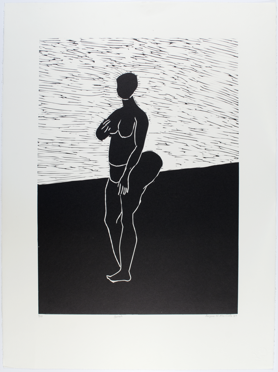 Linocut by Senzeni Marasela titled 'Sarah', 2009. (Elsewhere titled 'That Dress and Sarah I'). Inscribed, signed and dated. Edition 3/10. Condition: Excellent