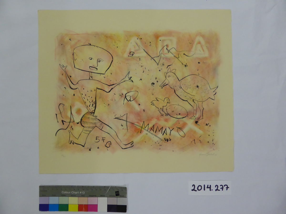 Presented by The Art Fund and the Esmée Fairbairn Foundation. An acquisition project to build a collection of modern and contemporary work on paper from Australia, Canada and South Africa was undertaken over 2011-13 with the support of a grant under The Art Fund's RENEW programme. The collection was developed with the expert advice and generous assistance of Annie Coombes and Norman Vorano in relation to South African and Inuit artists respectively. Khadija Carroll, Anita Herle and Diana Wood Conroy also contributed to the selection process. Obtained from Robyn Nesbitt, Artist Proof Studio Curator, The Bus Factory, 3 President Street, West Entrance, Newtown Cultural Precinct, Newtown/ PO Box 664, Newtown, 2113, Gauteng, Johannesburg.