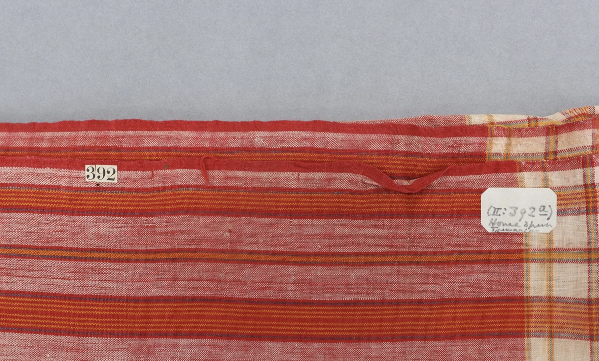 Hand written pencil label attached "II 392a/ Homespun cloth/ [?] Treinangam [spelling unclear]".