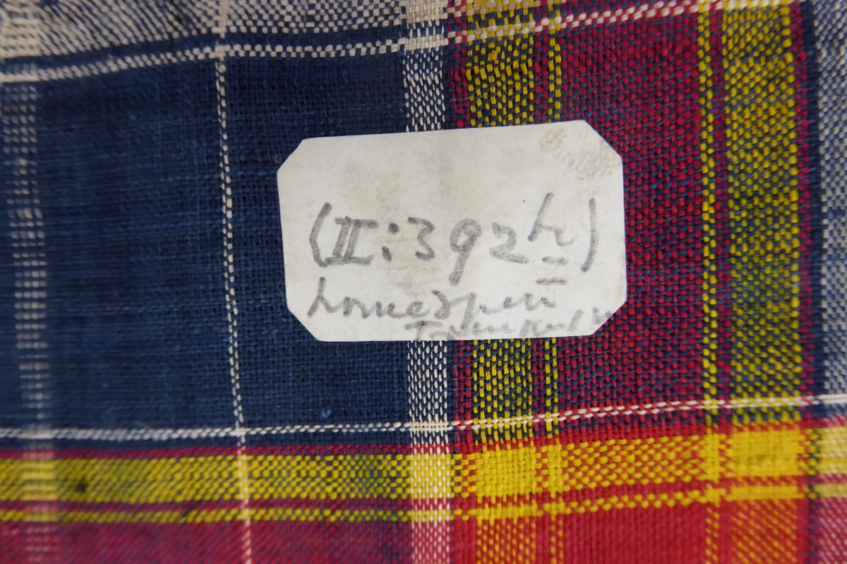Hand written pencil label attached "II 392h/ Homespun cloth/ Tremangan".