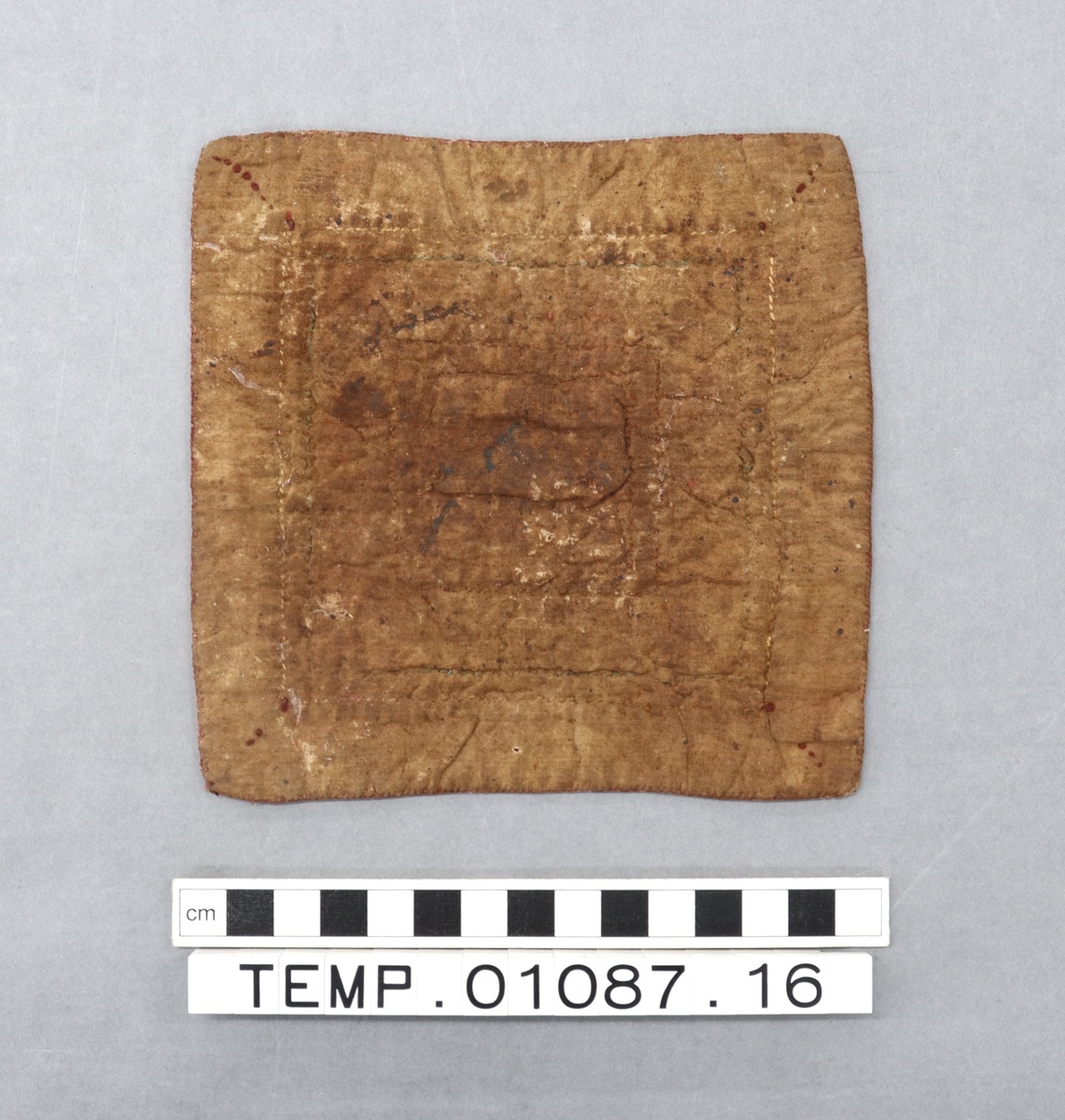 The alphanumeric number found on this object is characteristic of a numbering system associated with the collections formed by Walter William Skeat. However, It is missing its Skeat catalogue number and cannot currently be match to an entry in the Skeat I or Skeat II catalogues. It was previously suggested by Jean Somerville in 2005 that it could be associated with Skeat I: 723-732, but this is not certain. The description given in the Catalogue of First Skeat Collection (1899) reads: 'Ten Gtdebong, i.e. embroidered cloths in which the betrothed wrap up presents of betel-leaf for each other: the leaf itself being wrapped in the smallest gtde- bong, which is then wrapped in the next biggest, and the latter again in the largest cloth which forms the outside wrapper of the parcel'. This is not descriptive enough to say for certain that the two are connected.