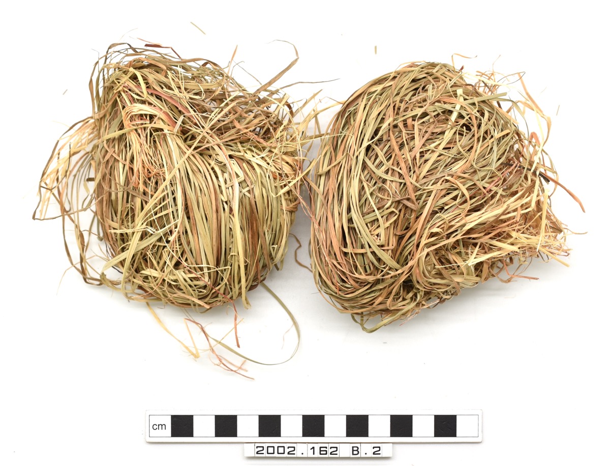 Two bundles of senna grass, used as shoe hay for a pair of children's winter boots (2002.162 A.1-2).