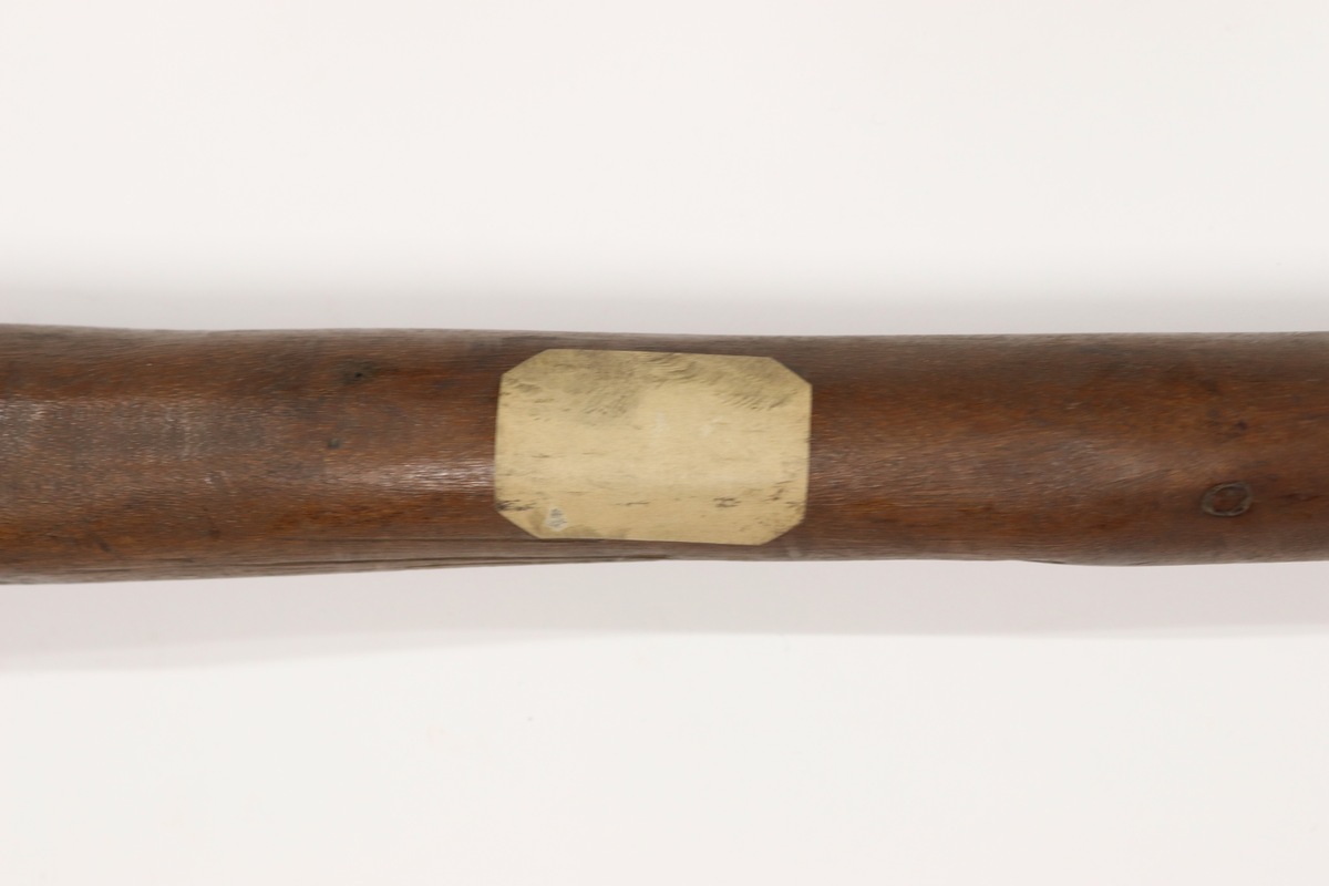 Old ripped paper label attached to shaft but no visible writing