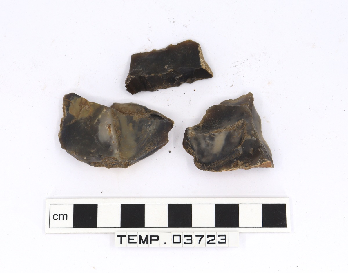 Fragment of one flint blade. Two pieces of flint debitage.