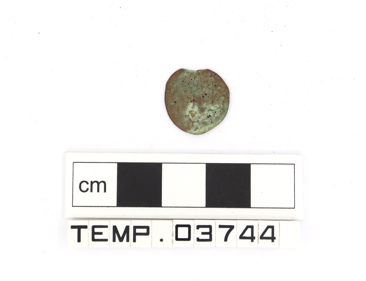 Copper alloy coin with bust on reverse and 'X' on obverse.