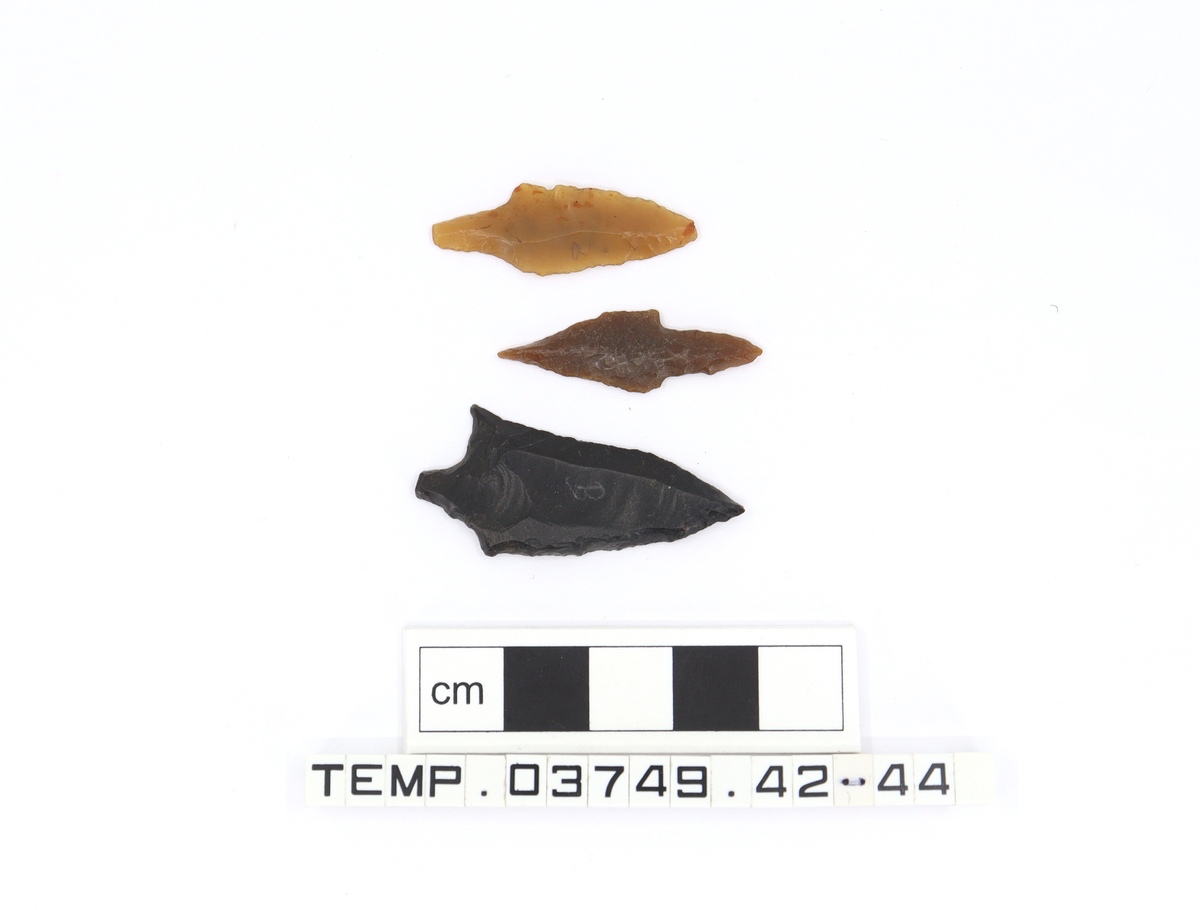 Gertrude Caton Thompson's deposit list (AR7/1/18) and catalogue card detail the 35 arrowheads 1927.1515 A-G. 49 further arrowheads were added to this idno at a later date and have now been assigned the Temporary number TEMP.03749.1-49. It is possible that they may originate from the same sites and excavation.