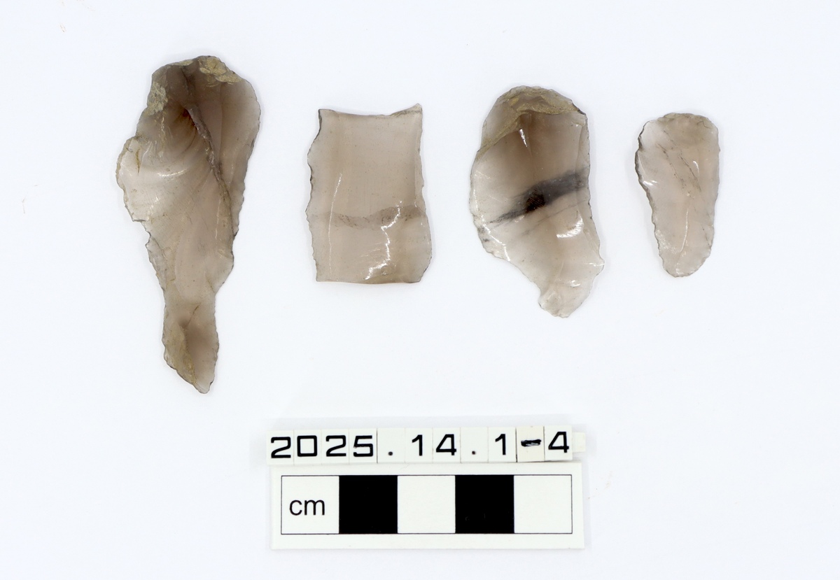 Four obsidian scrapers or utilised flakes.