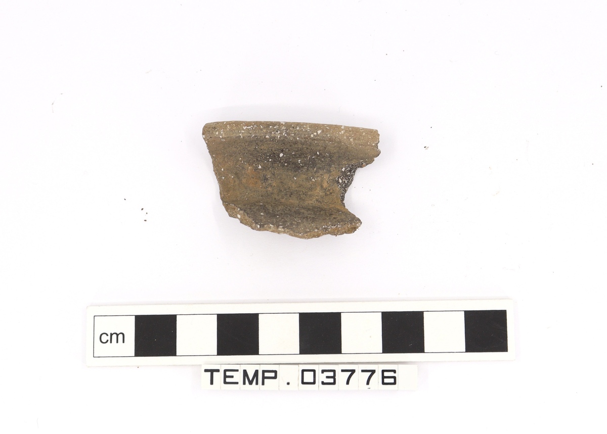 Rim sherd from a grit-tempered vessel. Strongly everted rim.