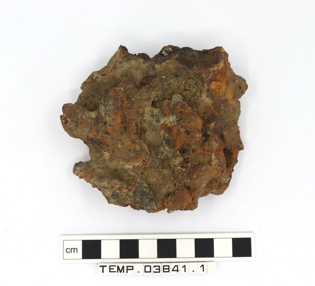 Description from specialist report by L. Biek and P. R. Payne: 'Slag. Heavy brown, slightly porous, part-cindery masses, once in fluid state, non-magnetic.'